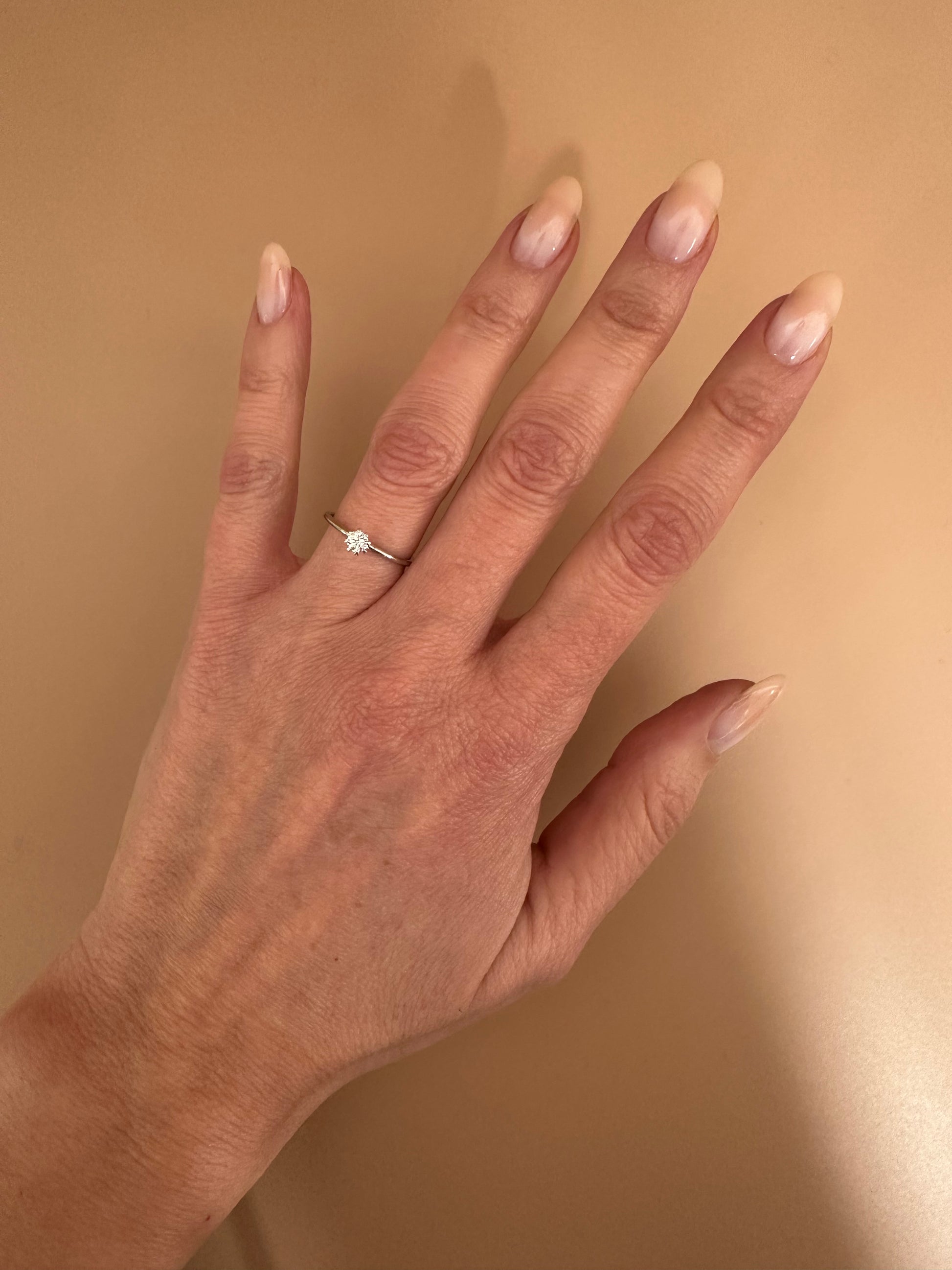 Anello solitario in oro giallo 750/18k con diamante naturale F/VS da 0.18 ct, taglio brillante.